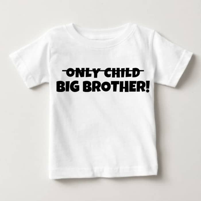 - “Only Child Big Brother” Text print on t-shirt.