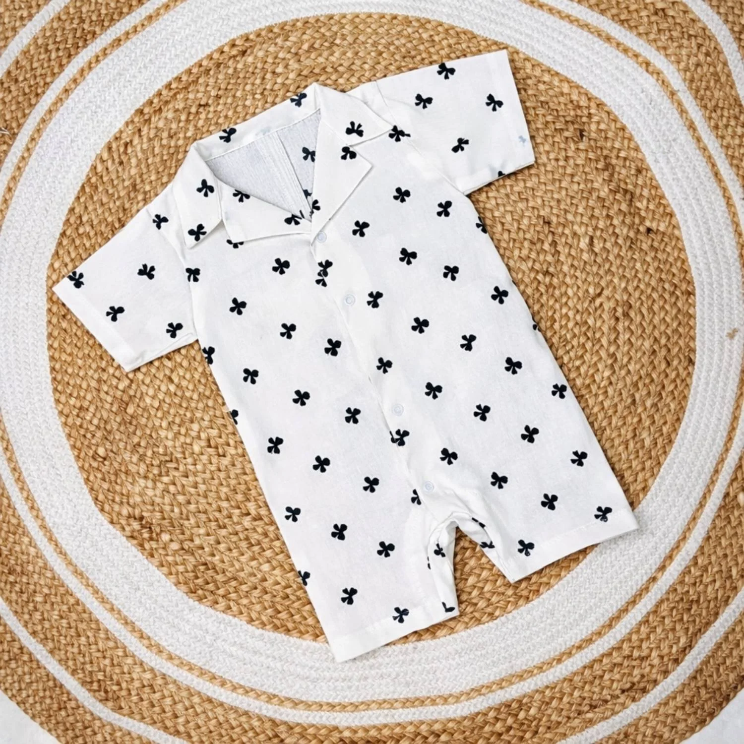 Classic Black Bow Print Collared Baby Romper