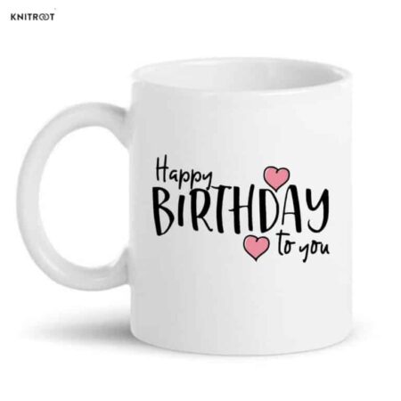 Happy Birthday Printed Coffee Mug White Ceramic Mug for Friend, Gift for Wife, Husband