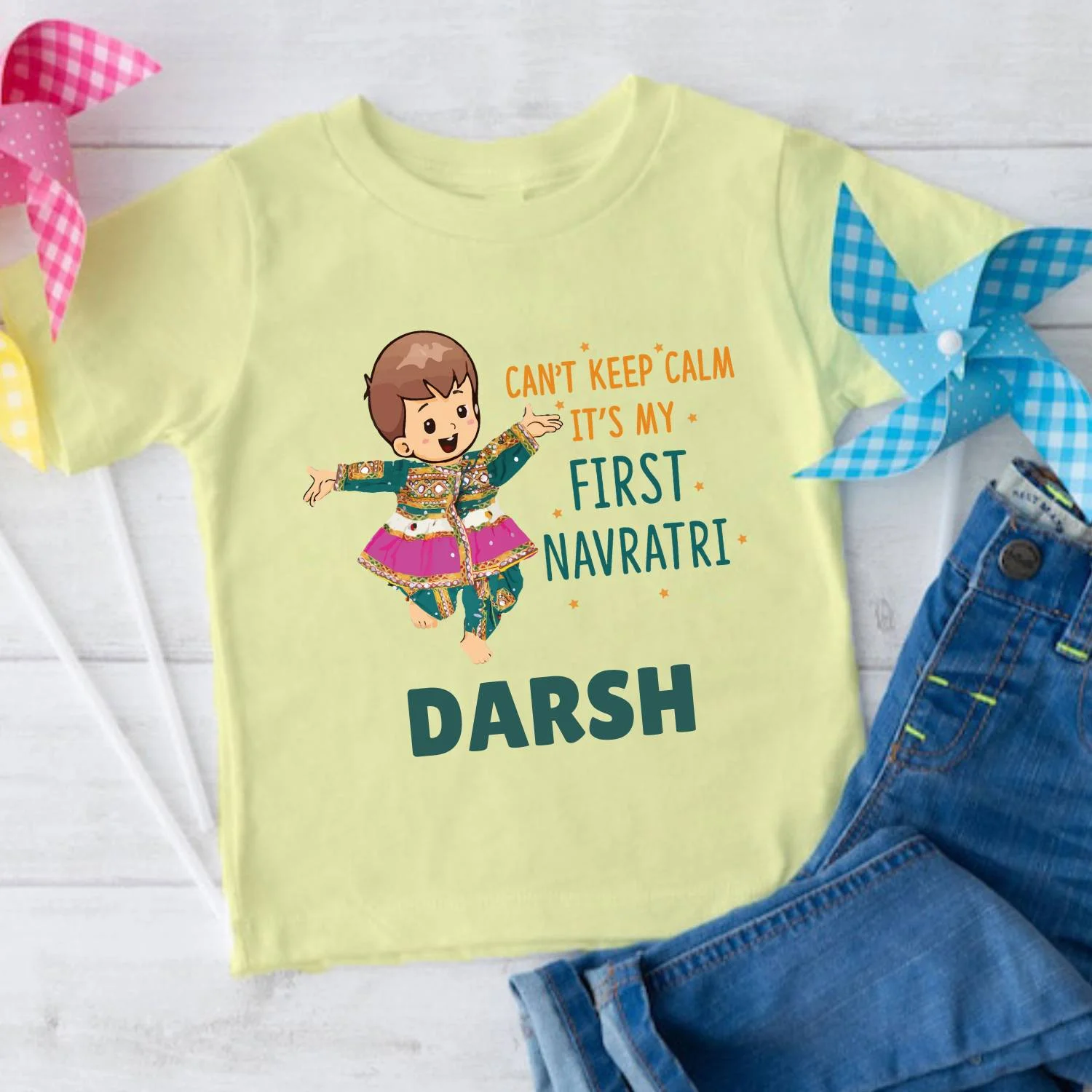 - Onesie / T-shirt with your child’s name on it brighten your festival/Occasion even more.