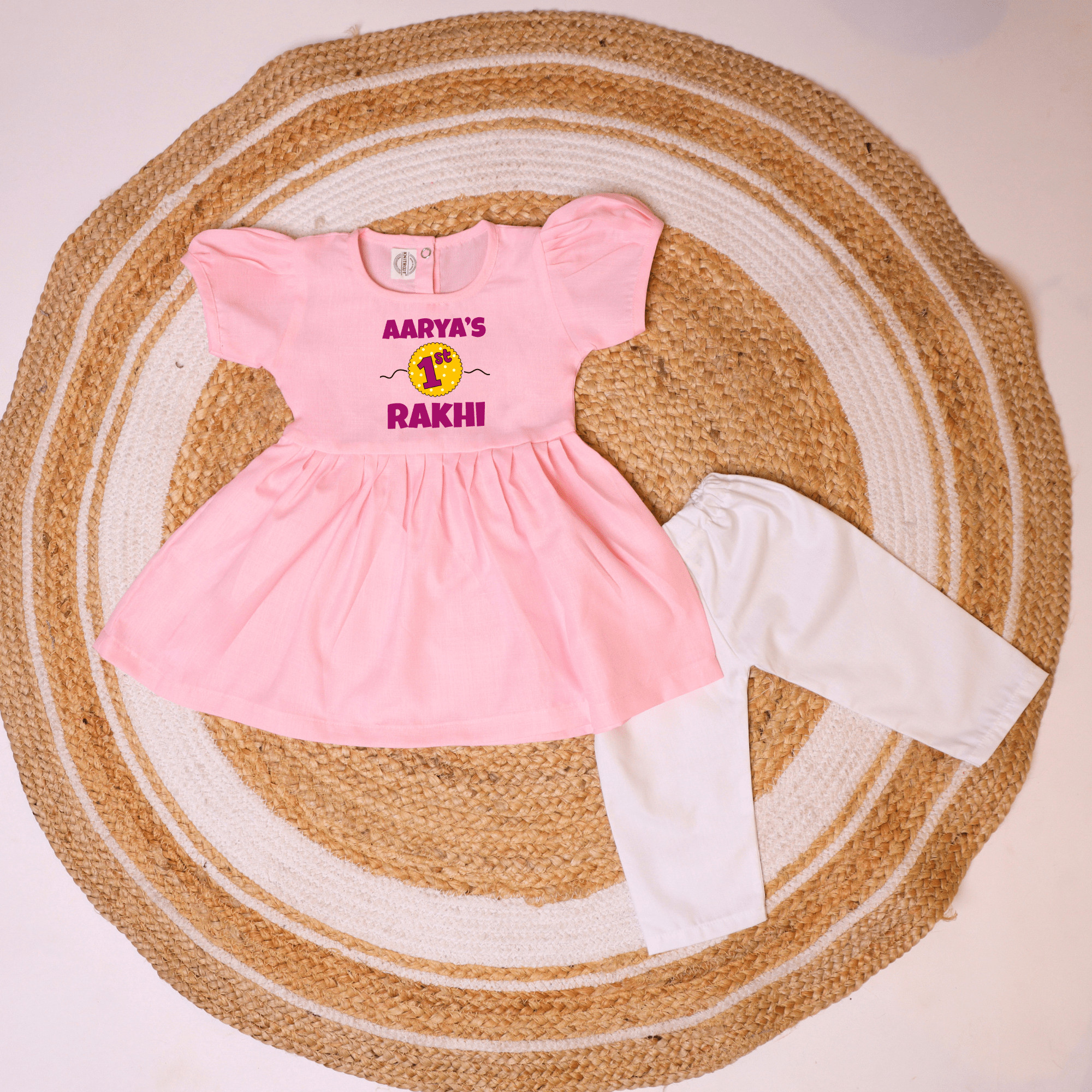 First Rakhi Pink Frock Set