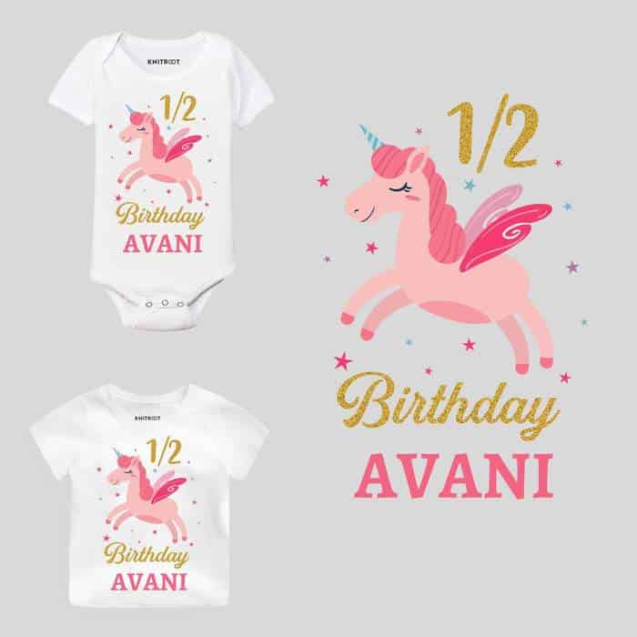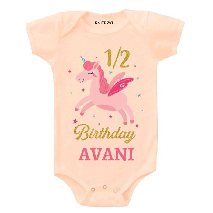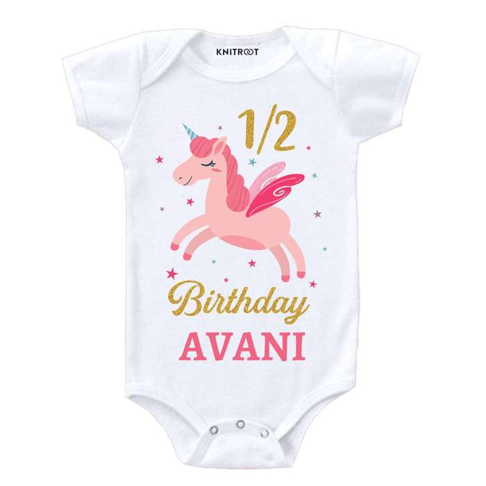 Half Birthday Unicorn Design Baby Outfit
