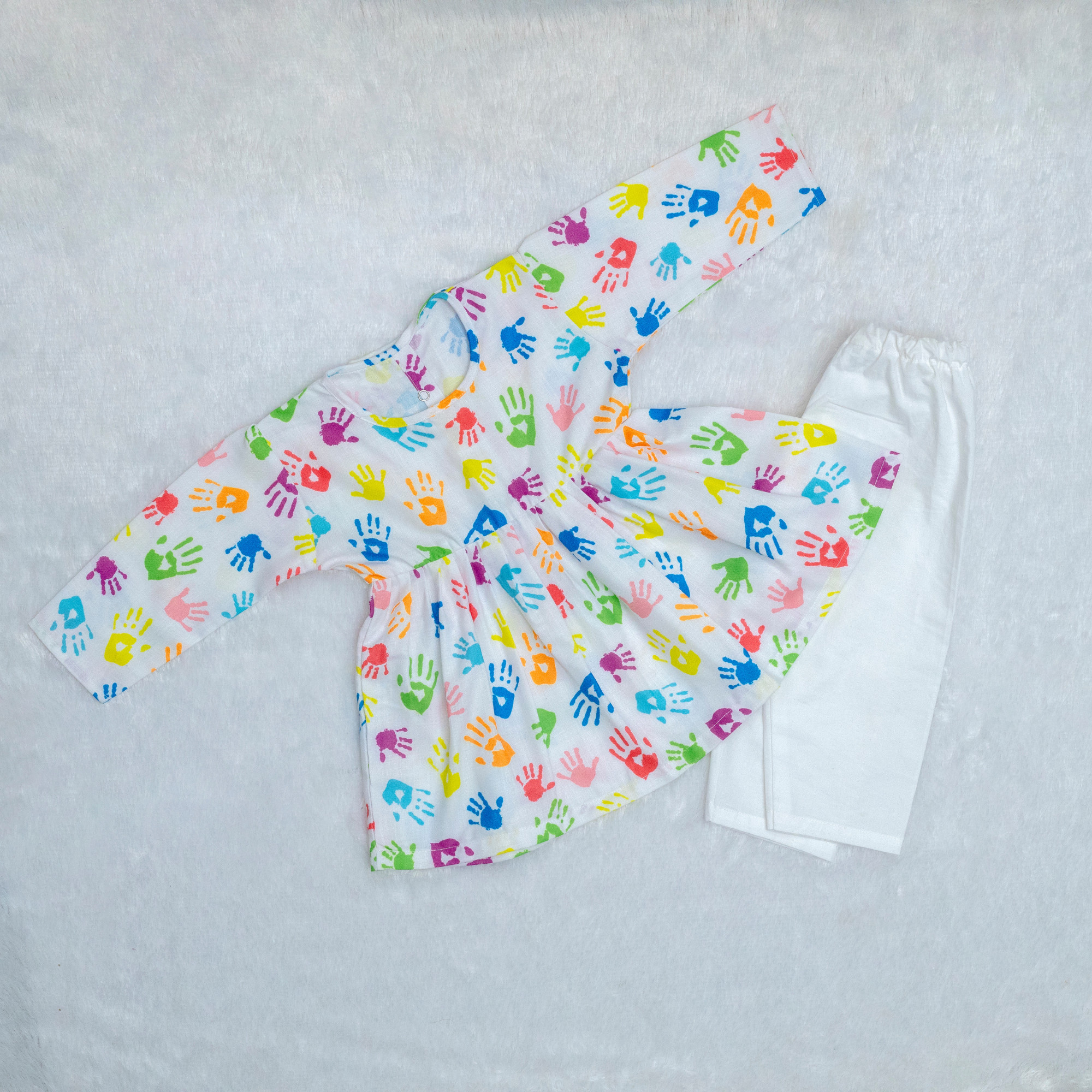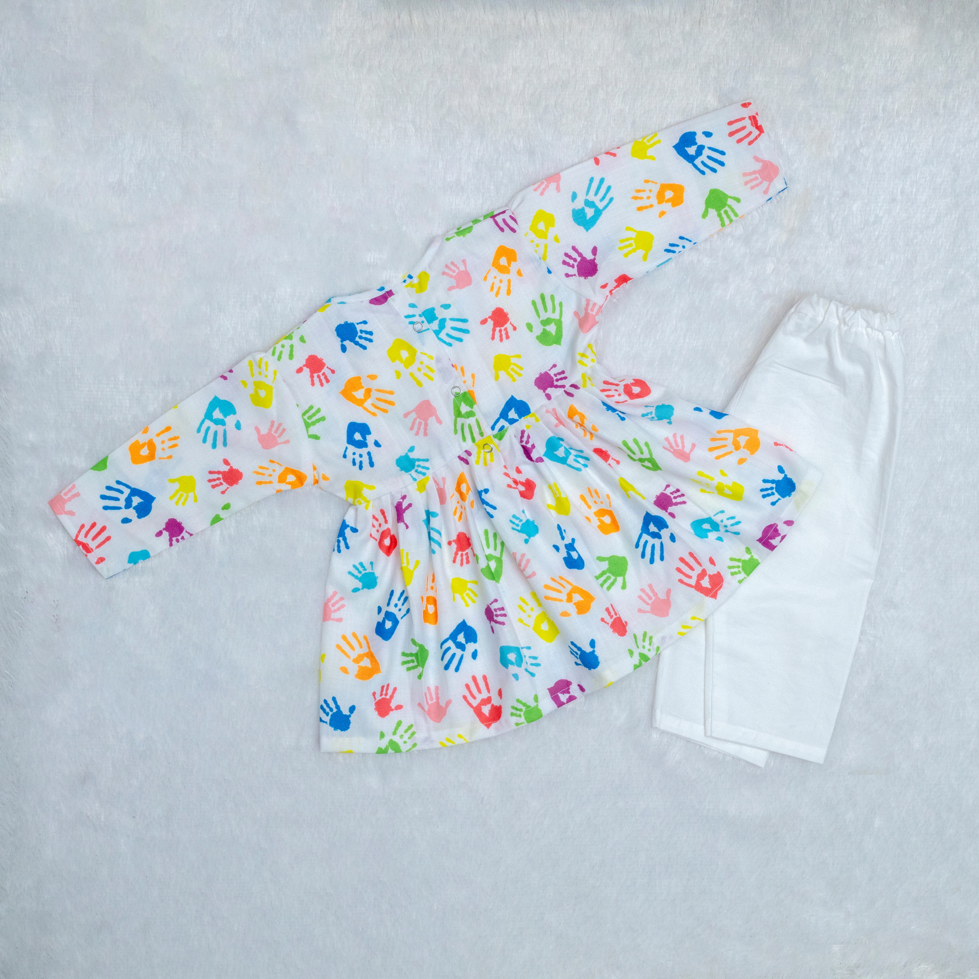 • The set contains One Frock Kurta & one Pajama