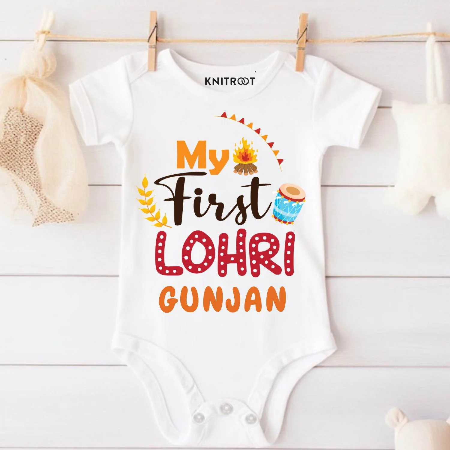 - Onesie / T-shirt with your child’s name on it brighten your festival/Occasion even more.
