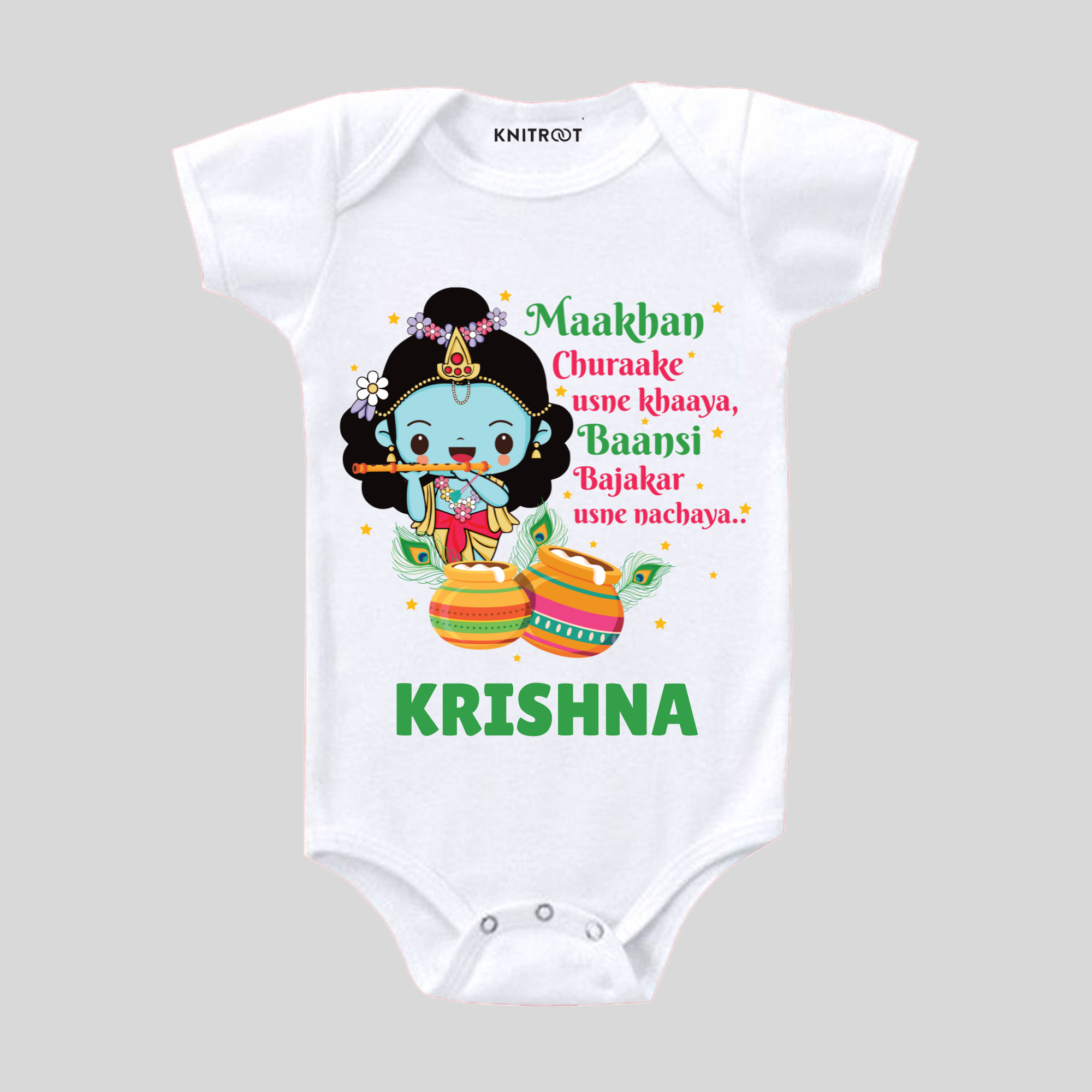Janmashtami is the auspicious day when Lord Krishna took birth on this planet. Janmashtami is not just a celebration of that midnight hour. It is also a celebration of the life of a legend. Krishna continues to play an integral role in millions of lives today. He is a protector, a strategist, a teacher, a brother, a lover, a playful child, a divine being. At Knitroot, we bring you a range of enchanting Janmashtami outfits that perfectly capture the spirit of Lord Krishna’s birthday. Our designs are inspired by the vibrant traditions and rich heritage associated with this joyous festival. Get ready to celebrate Janmashtami in style with our exquisite Janmashtami Collection! Dress your little ones as adorable little Krishnas and little Radhas with our beautifully crafted costumes. Our outfits are not only visually appealing but also comfortable, allowing your children to freely enjoy the festivities. With intricate design details and vibrant colors, our janmashtami outfits are sure to make your child the star of the celebrations. Let their playful spirit shine as they immerse themselves in the joy and magic of Janmashtami. Experience the magic of Janmashtami with Knitroot, where fashion meets devotion!