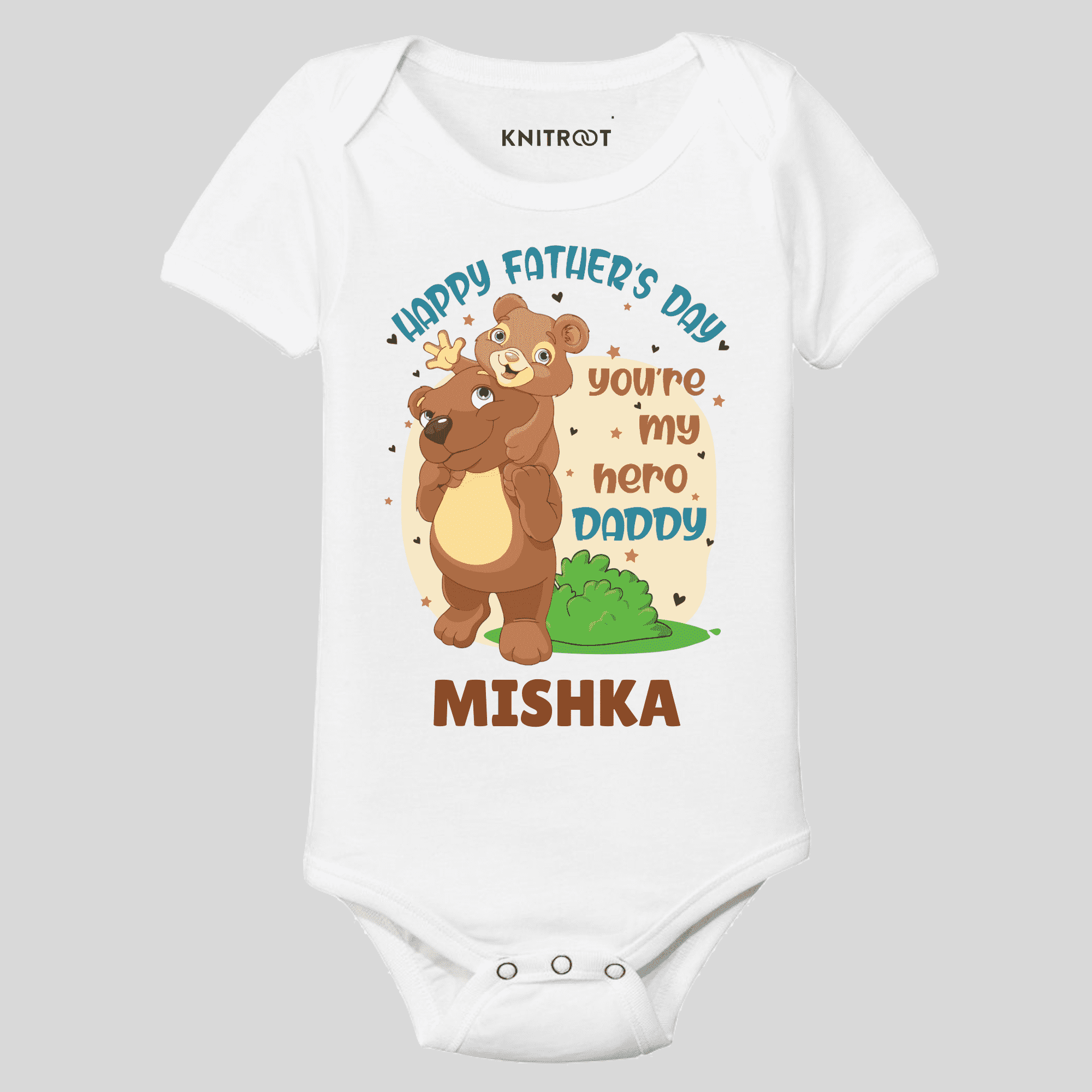 We all grew up reading books and watching superhero movies and cartoons. Every child has a common superhero in their life: their daddy. Fathers are the superheroes that don’t wear capes yet fulfil all of our wishes and take care of all of our troubles. They are the epitome of responsibility, strength, respect, love and the glue that binds the whole family. They put a lot of effort into giving us a good education and all the comforts. Our fathers are also our mentors, advisors, and friends. Father’s Day is the perfect occasion to tell your dad how much they are loved, appreciated and respected. Knitroot brings the adorable and alluring Happy Father’s Day collection of onesies/T-shirts/rompers. Spruce up the celebration by dressing up your little munchkin in our unique Father’s Day outfit and let them show their love and support for their superheroes.