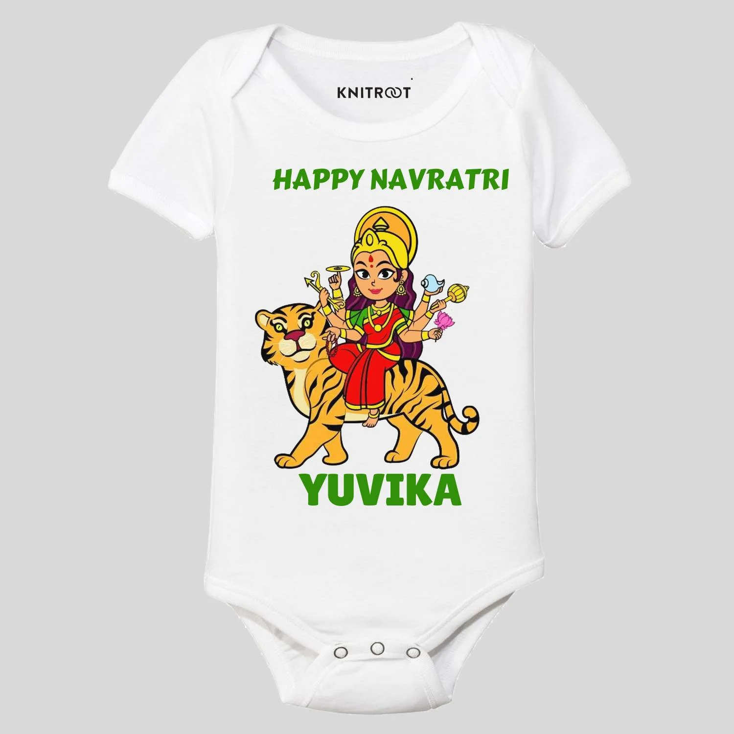 To sum up, this festival season, we bring to you occasion-based rompers/onesies. The festival of Navratri is here, and it obviously calls for endless festivities! Festival means forgetting the dull clothes and shopping for interesting and colourful ones. To make this easy for you, we have introduced the playful Navratri Collection. This Navratri, make your baby welcome Durga Maa by dressing up in our lovely collection. Above all, don’t forget to click Insta worthy pictures! Firstly, our range of designs and captions are unique and stylish. Moreover, collections consist of colours ranging from soft to vibrant. We go over the top to make our customers feel special by ensuring that the quality of our merch is top-notch. In other words, we aim to manufacture happiness and not a product. Why wait to add a tinch of awesomeness and cuteness to your baby’s wardrobe!? Certainly, come, shop at Knitroot!