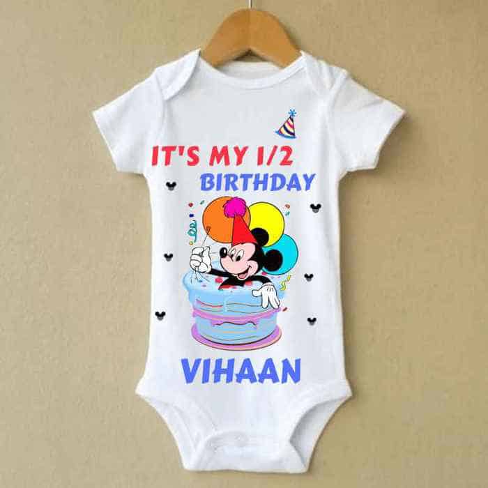 - Print: “Its My 1/2 Birthday Customized Baby Name ” text on romper.
