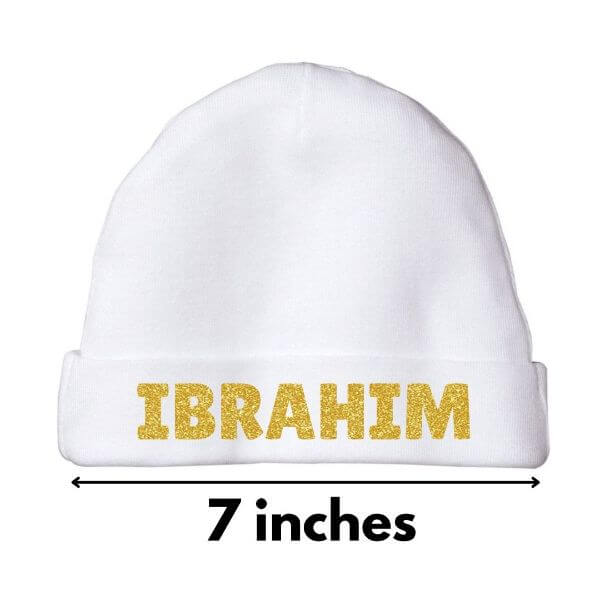 The cotton cap measures 7 inches, making it the perfect size for newborns and young infants. - What colors are available for the Personalized Special Glitter Baby Cap?