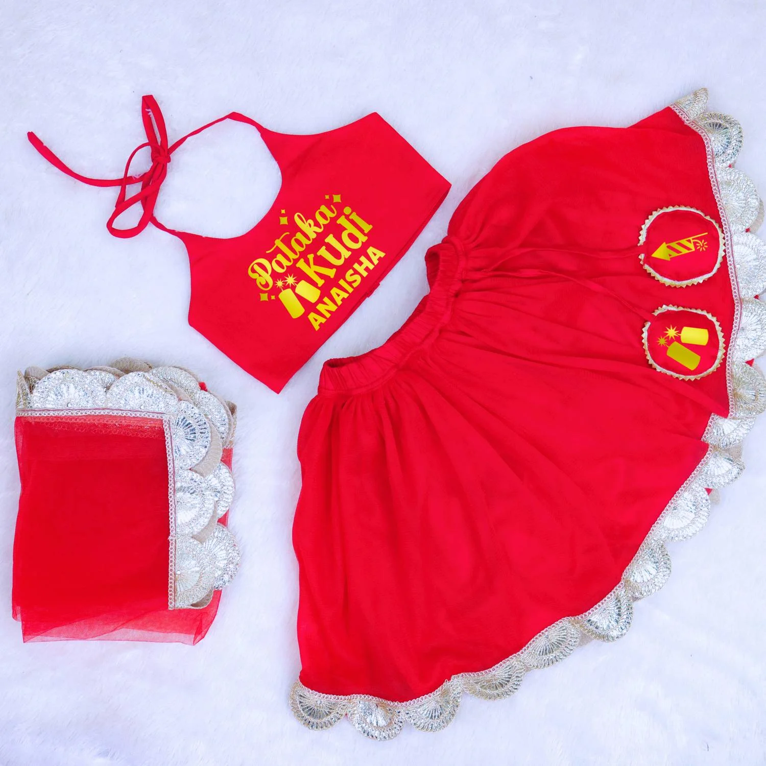 Pataka Kudi Personalised Name Red Lehanga