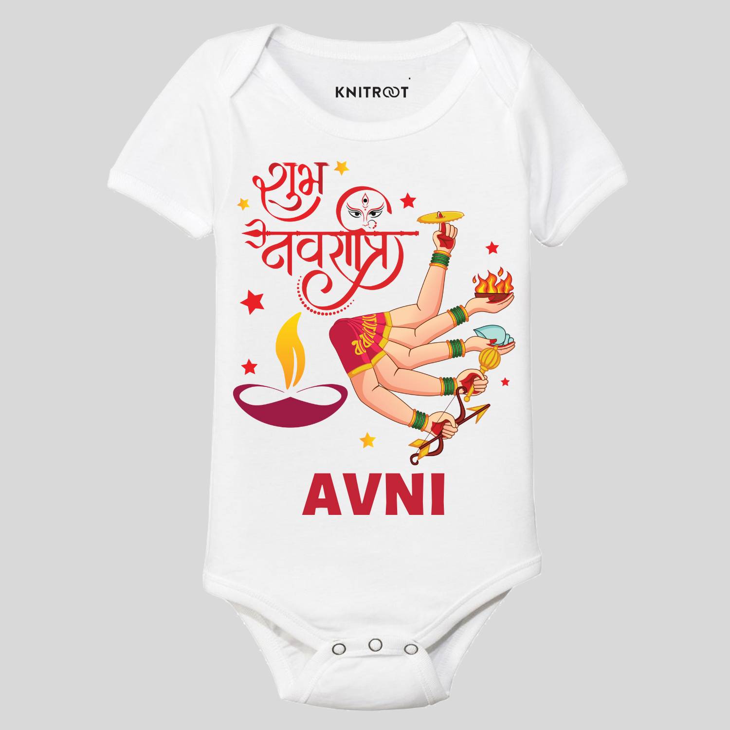 As the joyous festival of Navratri approaches, we are delighted to present our exclusive Navratri collection that will make your little ones the center of attention at every celebration. Each garment in our collection is crafted with utmost care, using high-quality fabrics that are gentle on your child’s delicate skin. Our Navratri special collection consists of onesies/T-shirts/rompers with vibrant prints and intricate design details, ensuring that your little darlings look their absolute best. Make this Navratri an unforgettable one for your kids with our mesmerizing collection. Welcome to Kntiroot, your one-stop destination for fabulous kids’ fashion.