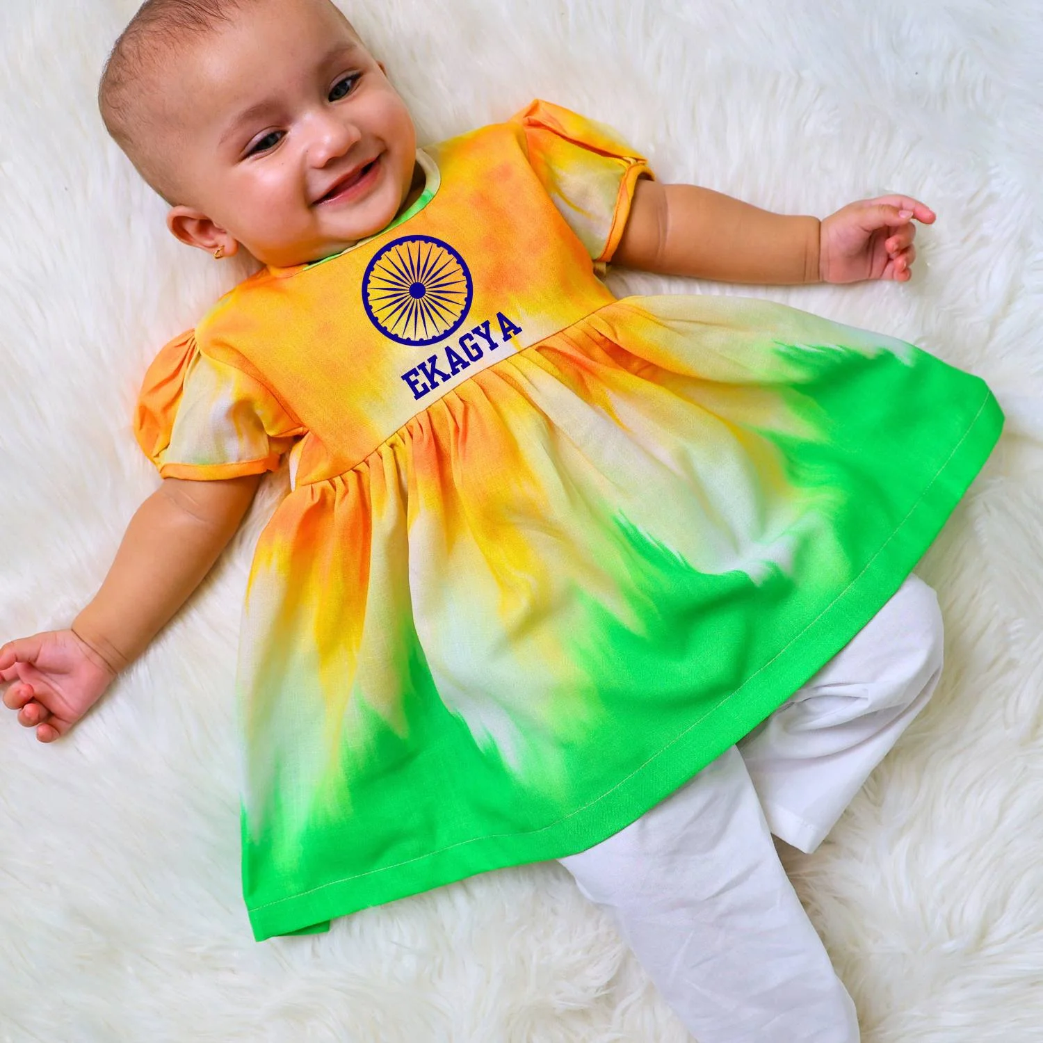 In addition, our range of designs and captions, including the Tricolor Frock With Customize Name On Frock, is unique and stylish. Moreover, our collections consist of colors ranging from soft to vibrant, ensuring there’s something for every taste. Each design, like the Tricolor Frock With Customize Name On Frock, is available in multiple colors and prints. The onesies, T-shirts, and Tricolor Frock With Customize Name On Frock are digitally printed with cute and catchy captions.